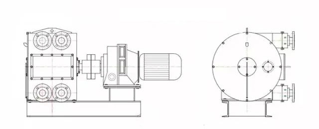 一根內壁光滑、強度可靠的特制橡膠軟管安裝在泵體內部,通過一對壓輥沿著軟管旋轉擠壓,這樣的旋轉使得介質往一個方向輸送而不會有倒流,軟管在輸送介質之后,由被壓扁軟管的自身彈性和側導輥的強制下,軟管恢復原狀,此時,軟管內產生高真空將介質再次吸入管腔,然后介質在隨之而來的壓輥擠壓下從軟管內排出,如此周而復始,介質不斷地被吸入和排出。